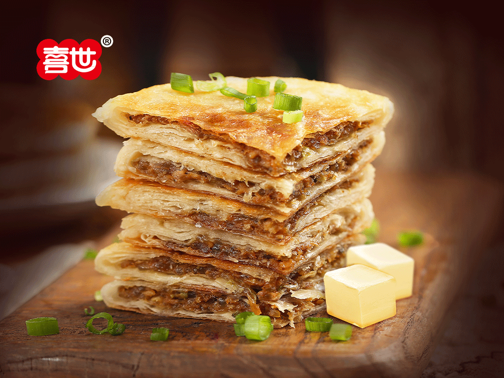 食用方法:產品無需解凍,去除外包裝后放入預熱后的平底鍋或電餅鐺中,需加少量油,中小火雙面煎制6-8分鐘,至餅的側邊緣金黃即可食用。